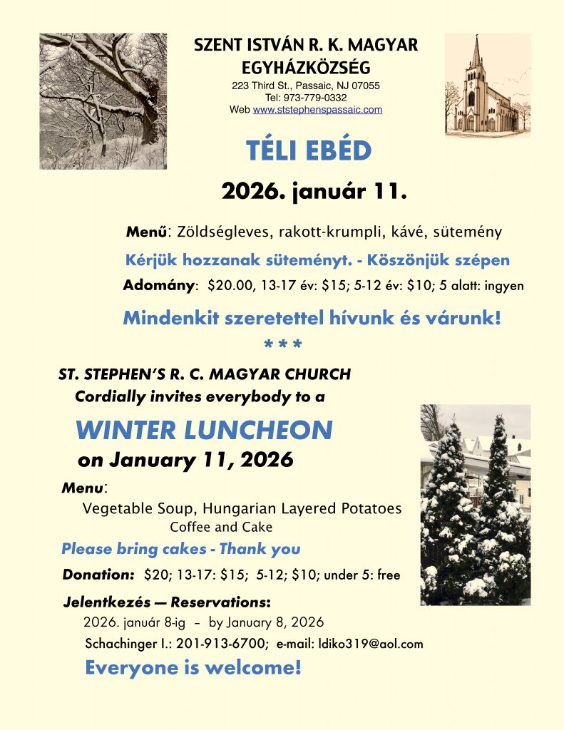 Akik otthonukban szeretnének szentáldozáshoz járulni, hívják a plébánát a 973-779-0332-es telefonszámon, vagy jelezzék emailben a StStephensPassaic@gmail.com címen. Távolság nem akadály!